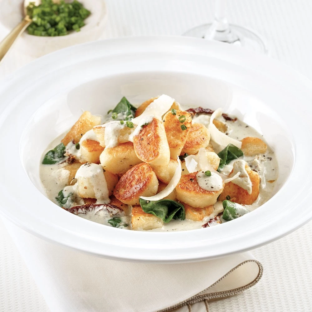 - Servir les gnocchis avec la sauce. Garnir de Âciboulette.