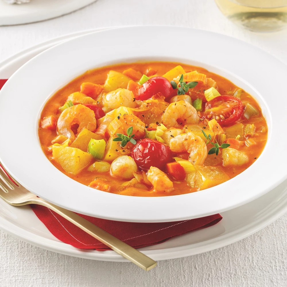 - Ajouter le bouillon et la bisque. Porter à ébullition, puis laisser mijoter de 12 à 15 minutes à feu doux-moyen, jusqu’à ce que les légumes soient tendres.