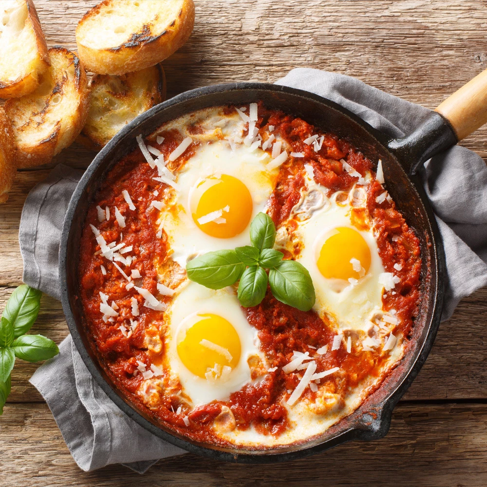 - Ajouter les œufs au mélange et couvrir avec un couvercle. Laisser mijoter à feu doux pendant 5 à 8 minutes, jusqu'à ce que les œufs soient cuits à point.