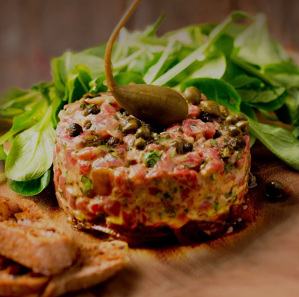 3. À l’aide d’un couteau bien affûté, hacher le bœuf finement et l’incorporer à la préparation. Ajoutez les câpres et mélanger.