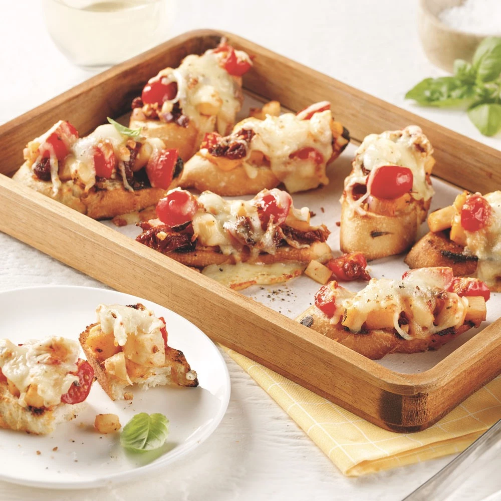 - Déposer les bruschettas sur un plateau d’aluminium.