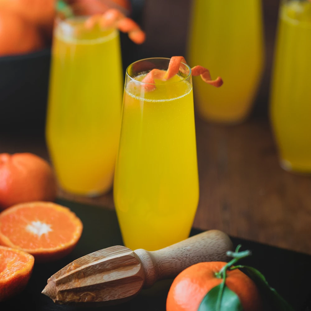 4- Verser le jus de mandarine dans une coupe de champagne.