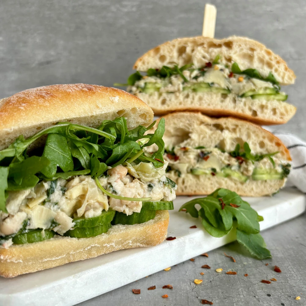 Préparer la tapenade d’artichauts en ajoutant tous les ingrédients dans une grande assiette, puis écraser le tout à la fourchette jusqu’à la consistance désirée.