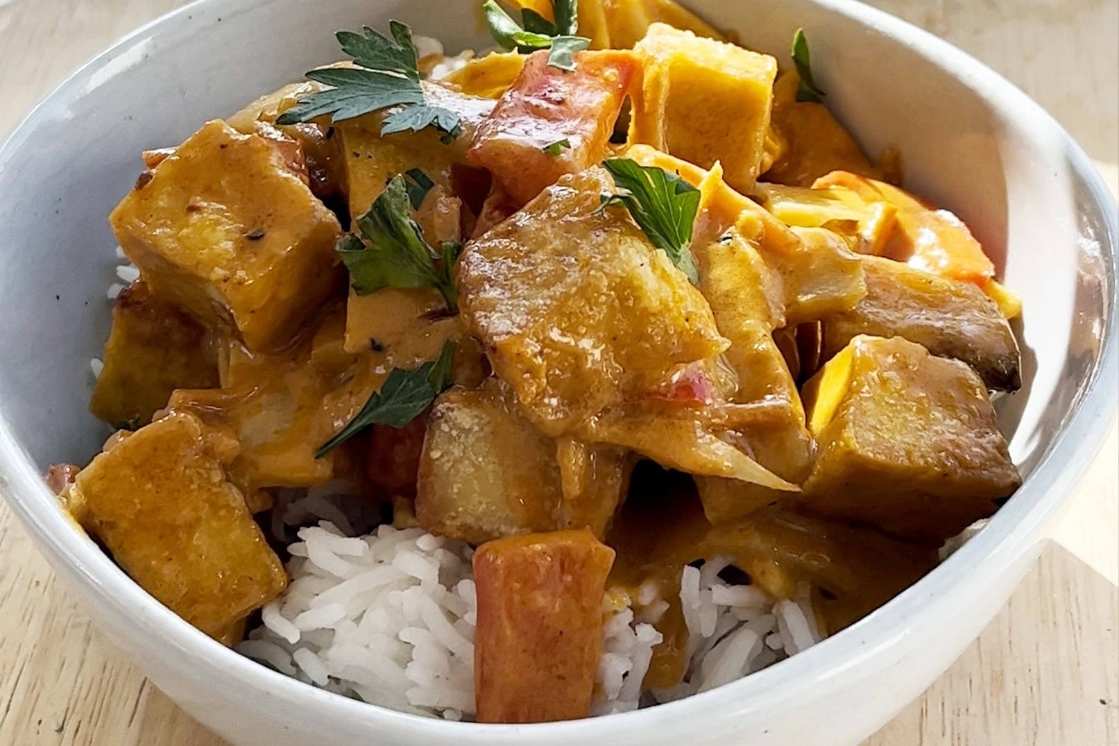 5. Place rice in a bowl and top with curry and cilantro, enjoy